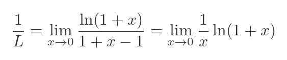 We know that, as h tends to 0, eh tends to 1. From the first equation above, that means that, as h tends to 0, x also tends to 0. So we can write the limit for 1/L in terms of x rather than h: