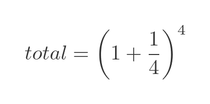 We can express this as a formula. Twice a year, we have interest added to the account that is worth half of the amount in the account. This is equivalent to multiplying the value of the account by one plus a half, and this happens twice, so the total amount is: