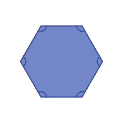 A regular hexagon is a 6-sided shape where every side is the same length and every corner has the same angle. All regular hexagons have the same shape, like this: