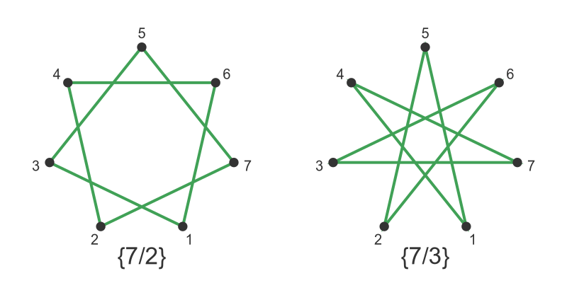 - {7/1} and {7/6} will create a normal convex heptagon.