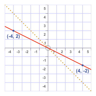 This graph goes through the points (-4. 2) and (4, -2), calculated in the same way as before. This time the curve is less steep than y = -x.