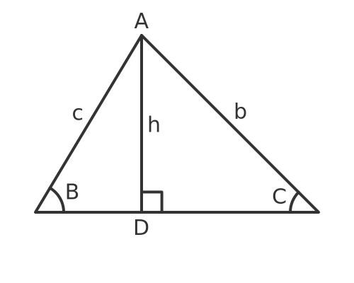 The triangle ACD is another right-angled triangle with angle C, hypotenuse b, and opposite side h. This time we have: