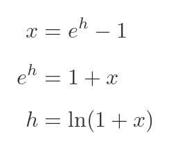 We will use a variable substitution x. We can then express eh and h in terms of x: