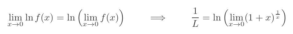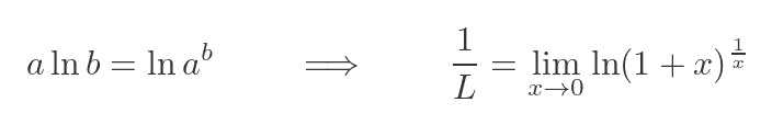 We know that, as h tends to 0, eh tends to 1. From the first equation above, that means that, as h tends to 0, x also tends to 0. So we can write the limit for 1/L in terms of x rather than h: