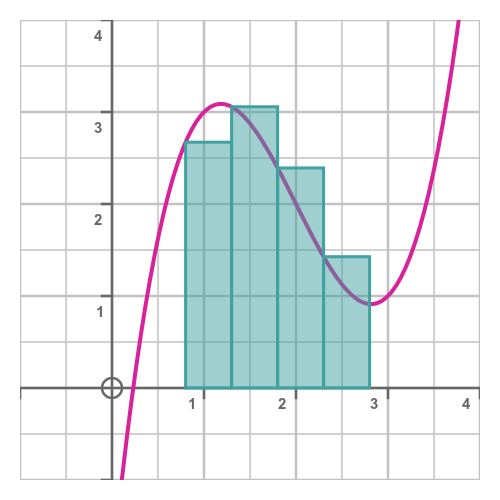 Before we go back to pretending we don't know this result, we will note that the integral between the range shown (0.8 to 2.8) is exactly 4.384. We can compare our approximate results to this exact value to see how well the approximations work.