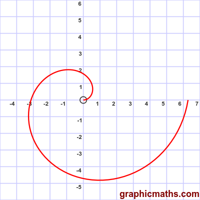 where $a$ is a non-negative constant, describes a spiral curve of that is similar to the curve above (ie it is the same shape, but scaled by $a$). Here are the curves created for $a = 1$ (red), $a = 1/2$ (green), and $a = 1/4$ (blue):