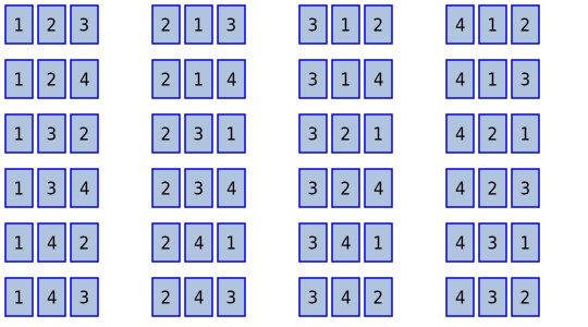 Imagine we have 4 cards, numbered 1 to 4, and we place them on a table, side by side: